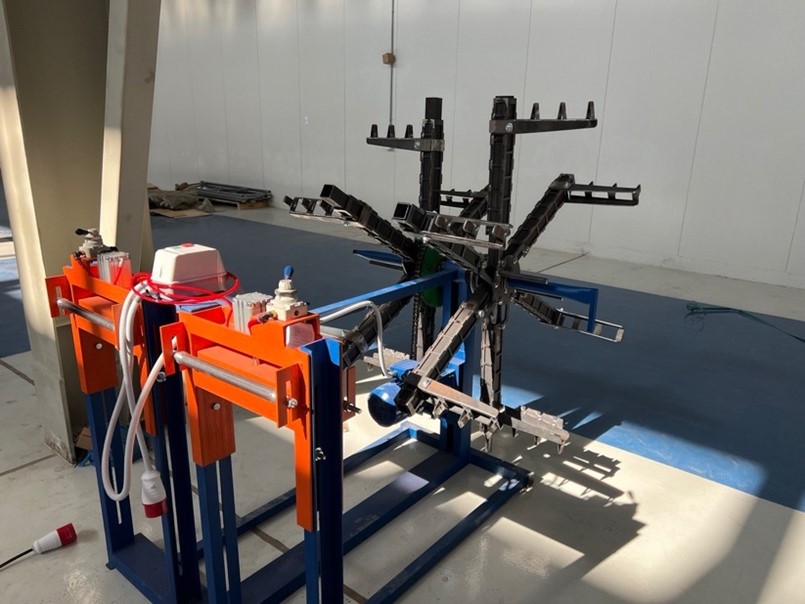 Предназначен для производства композитной арматуры в бухтах. Оснащен системой захватов, для исключения разматывания готовых бухт.