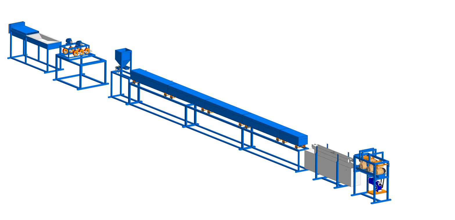Данная линия позволяет серийно изготавливать стеклопластиковую арматуру для поперечного прутка диаметром от 2 до 6мм со скоростью до 110 000 метров за смену 12 часов.